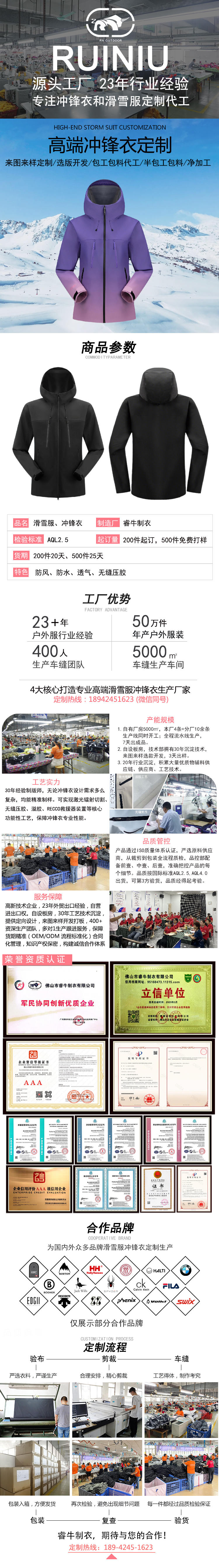 廣東睿牛戶外用品有限公司:專注沖鋒衣、滑雪服、風衣、夾克的梭織服裝定制加工廠家